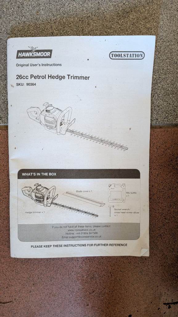Hawksmoor 26cc Petrol Hedge Trimmer. Left in the house by previous owner.