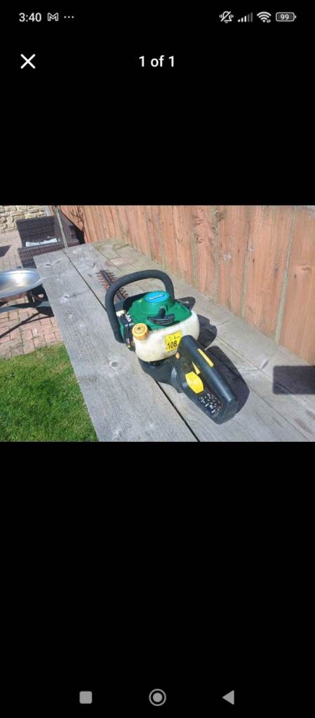 This petrol hedge trimmer has had minimal use, however it is sold as seen as it needs an engine clean. It was last used a few years ago and the petrol mix was left in the machine by mistake, so ideal for DIY’er who has knowledge of engines.