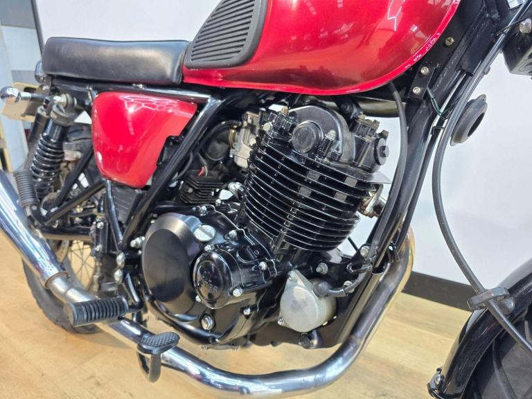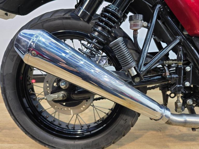 What truly sets this specific Classic 250 apart is its impressive array of high-quality features and tasteful upgrades. It delivers a fantastic sound and reduced weight from its Stainless Sports Exhaust, riding beautifully on classic Spoke Wheels. Rider ergonomics and control are enhanced with functional Tank Grippers, complemented by the iconic Bench Seat that completes the authentic cafe racer/scrambler look. This bike also benefits from significantly improved handling and ride quality thanks to upgraded Racetec Rear Shocks.