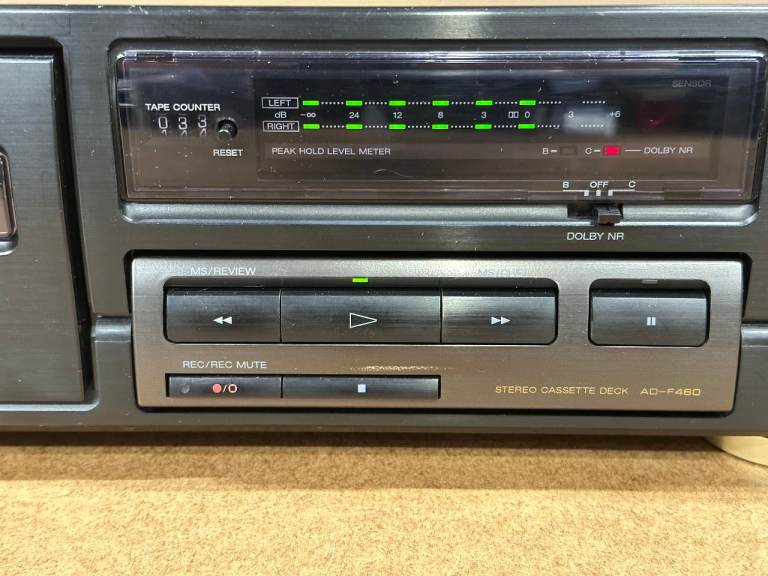 I used it to play some old tapes into my computer (via the computer’s input connector) but I no longer have a use for it so it is now for sale. The playback works fine and sounds good – the dolby B and C noise reduction functions are working as expected, the counter works fine, the main phono outputs on the rear and the headphone output on the front work as does the cue forwards and backwards (holding the FF or REW button while in play mode allows you to hear the content on the tape whizzing by at high speed to see where the breaks between songs are). I have not used any other playback functions.
