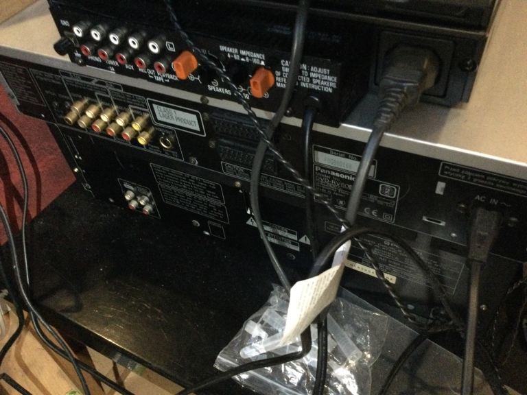 Panasonic turntable (not working 100%), tuner working fine, amplifier working fine, Panasonic dvd/video cd DVD RV60 working fine. Pioneer cassette deck with remote not working as needs rubber bands replacement