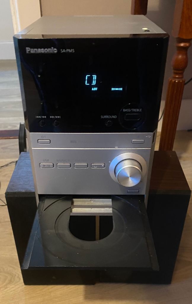 Panasonic SA-PM5 CD Stereo System with surround sound, USB port ,3.5mm Input Jack & Remote Control