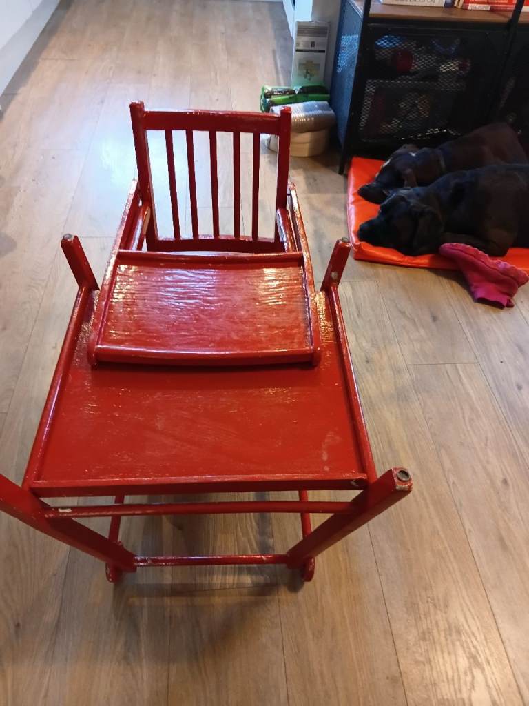 Antique transforming high chair, in good condition, no longer needed as daughter has gotten too big for it.