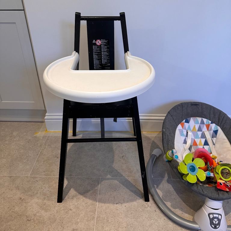 Black and white Ikea high chair, needs a clean but good condition. Collection only Marlpit hill (tn86je)