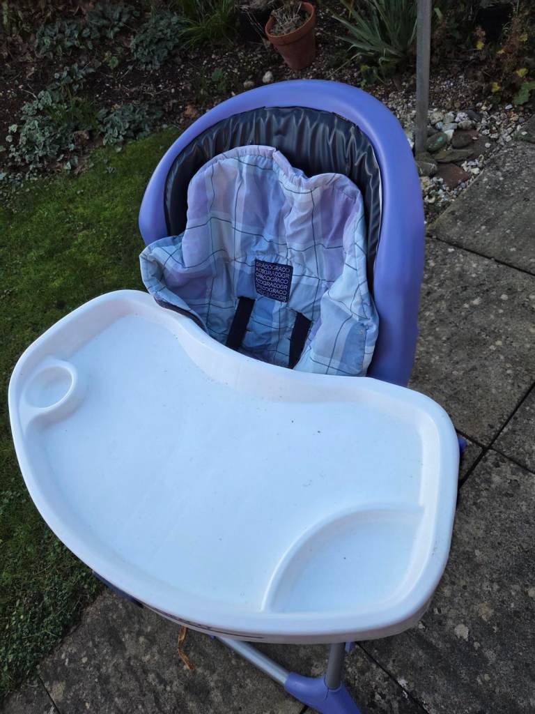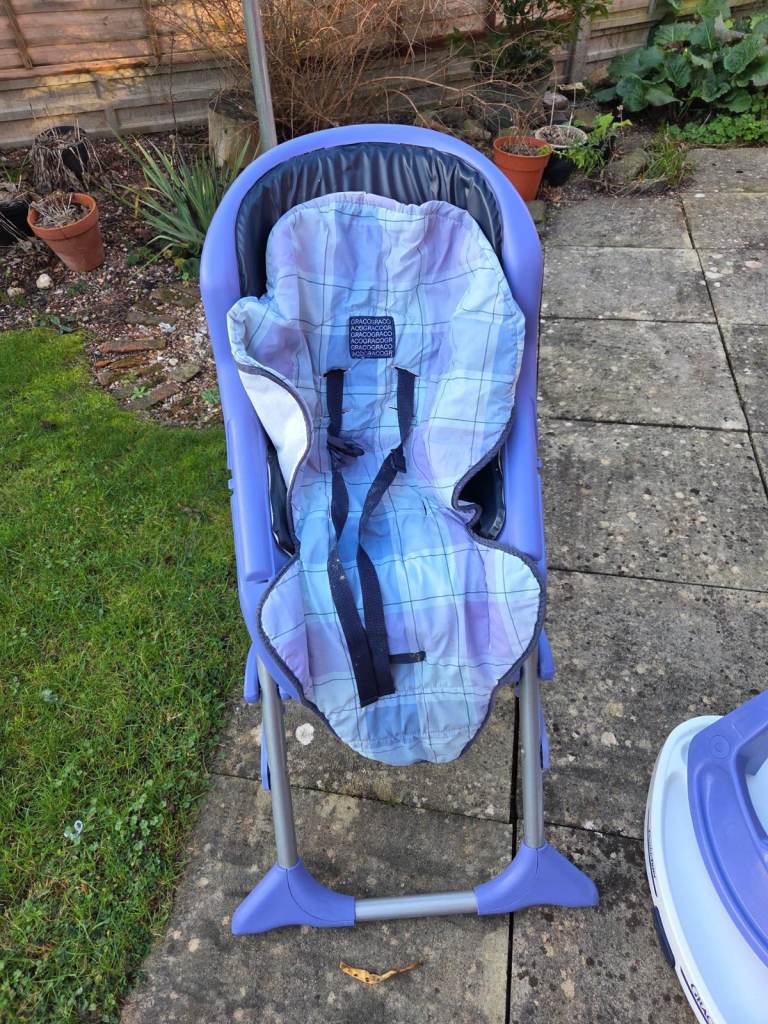 Graco Child High Chair (Ideal for Grandparents House), with harness and detachable table, which also slides for access. Needs a clean-up, but has been used for 4 Grandchildren - ready for more. Pickup in Wellesbourne, Warwickshire.