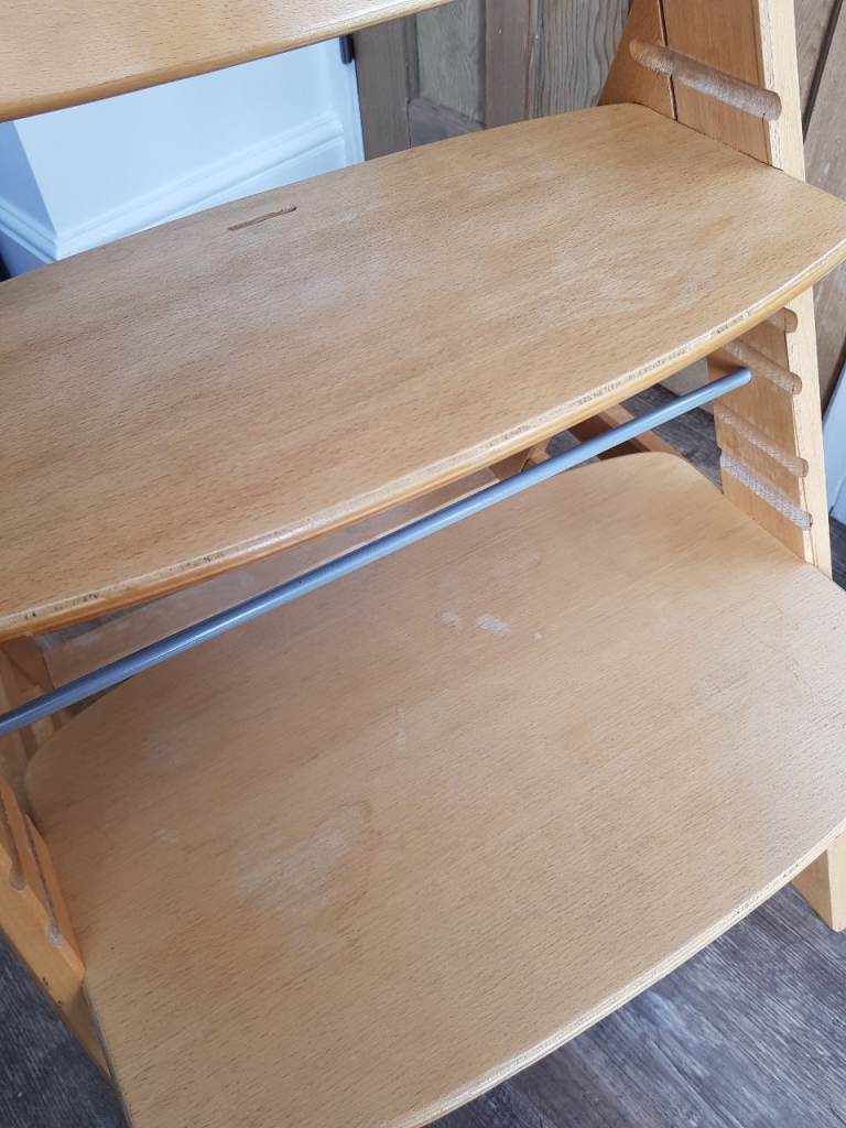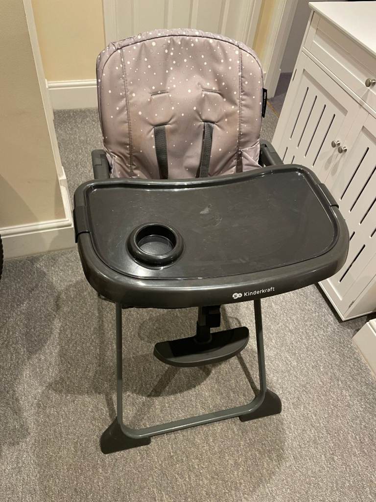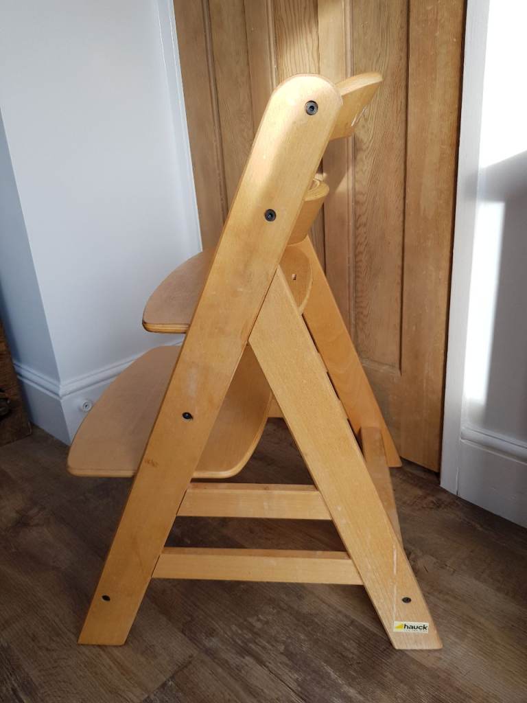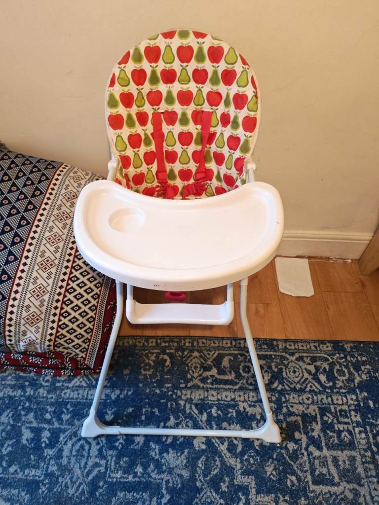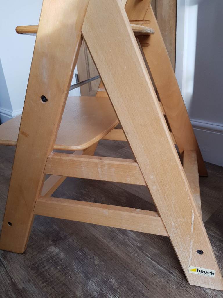 Hauck high chair for sale as child has outgrown it now. It has been used for 6 years, so lots of stains and few stuborn stickers as shown in pictures, but still sturdy, working very well and full of life left.