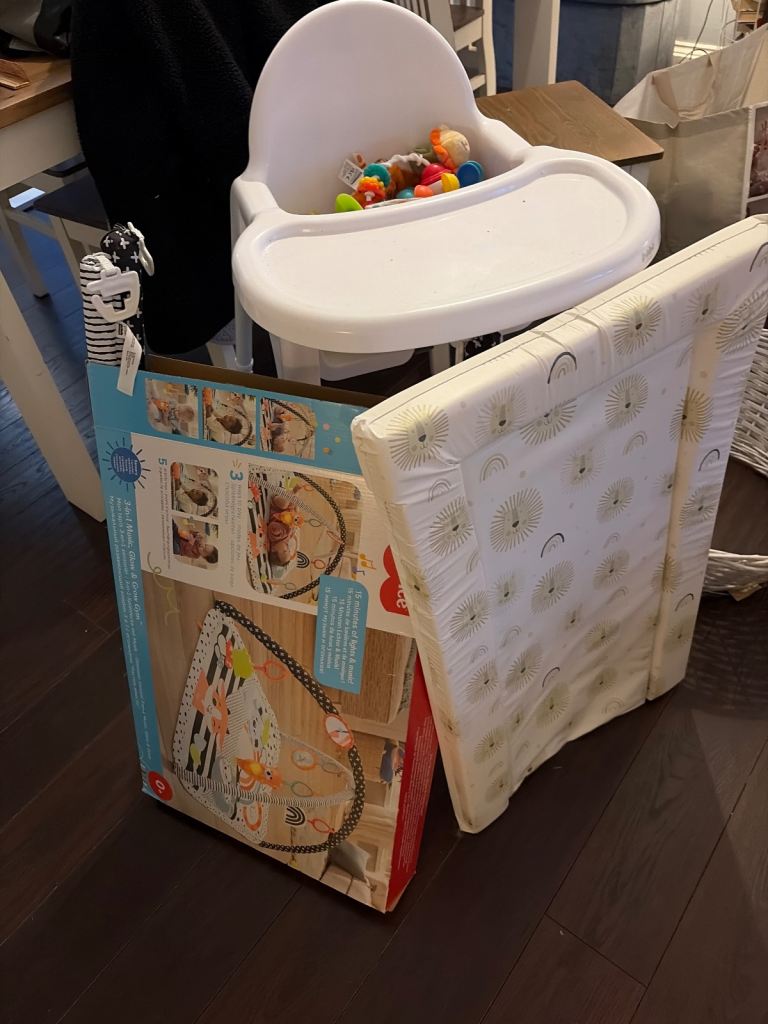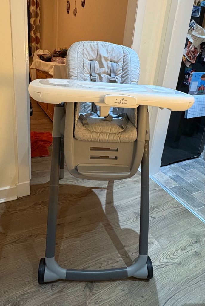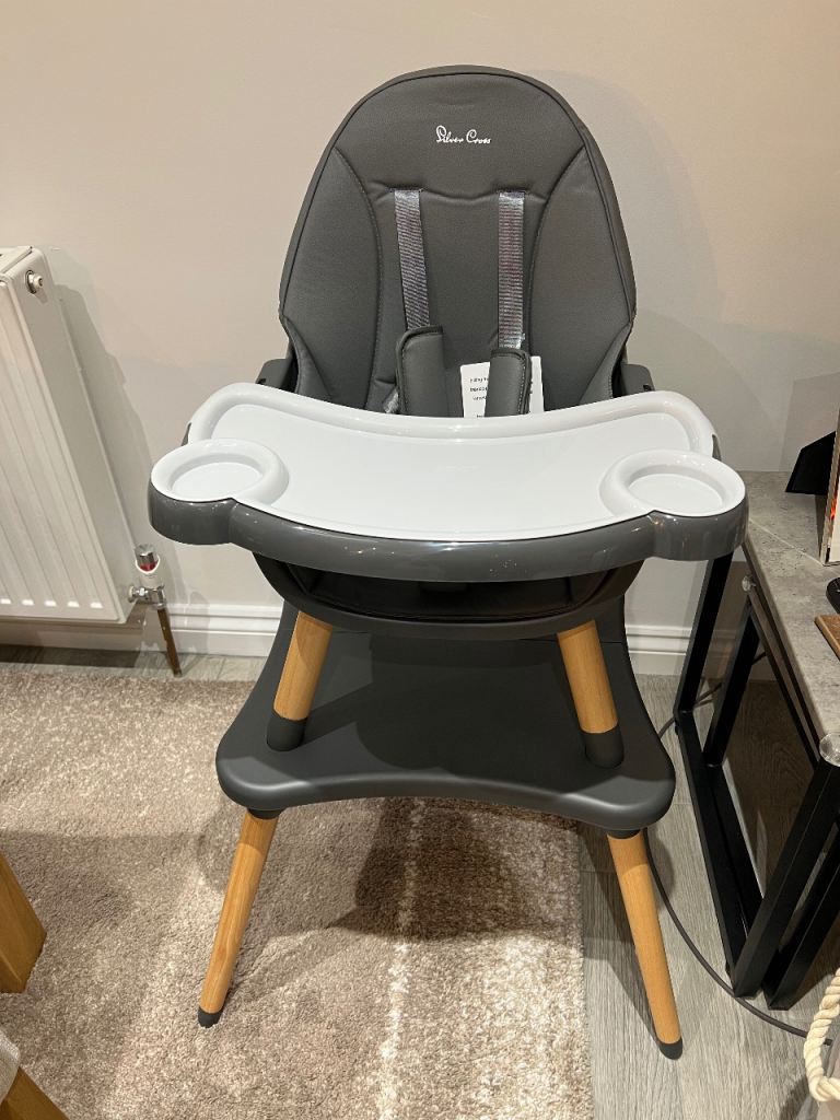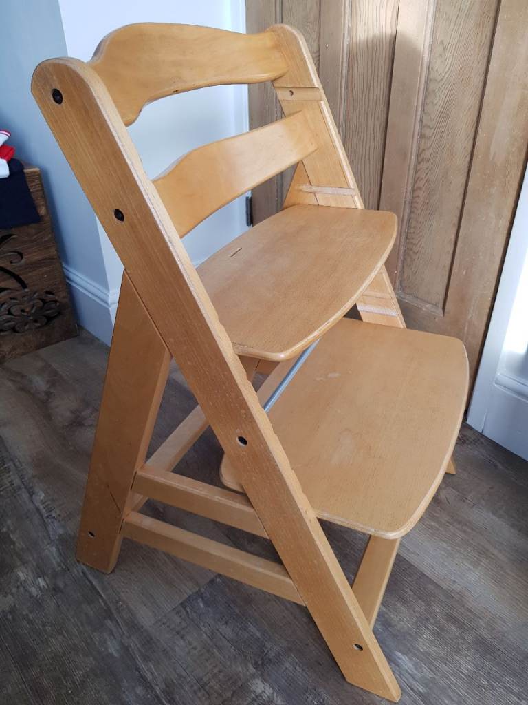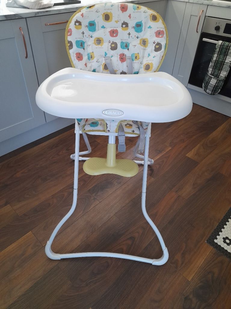 Hauck high chair for sale as child has outgrown it now. It has been used for 6 years, so lots of stains and few stuborn stickers as shown in pictures, but still sturdy, working very well and full of life left.