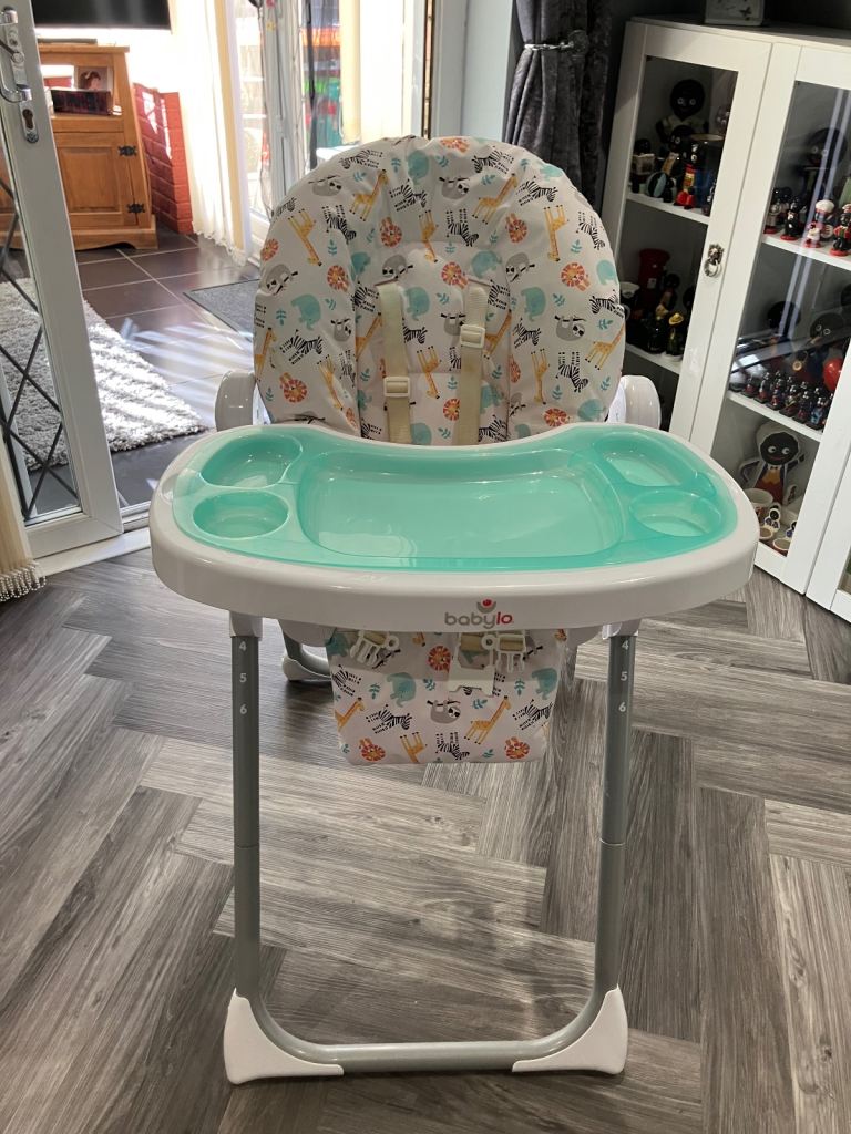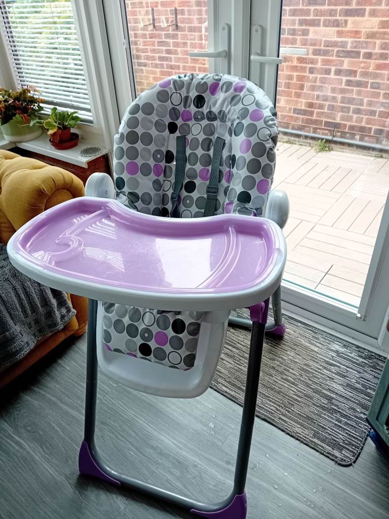 I am selling a reliable high chair as my child has outgrown it. It has served us well for 2 years and is still in excellent, clean, and fully functional condition. This high chair has been a lifesaver for making meal times comfortable and secure for our little one.