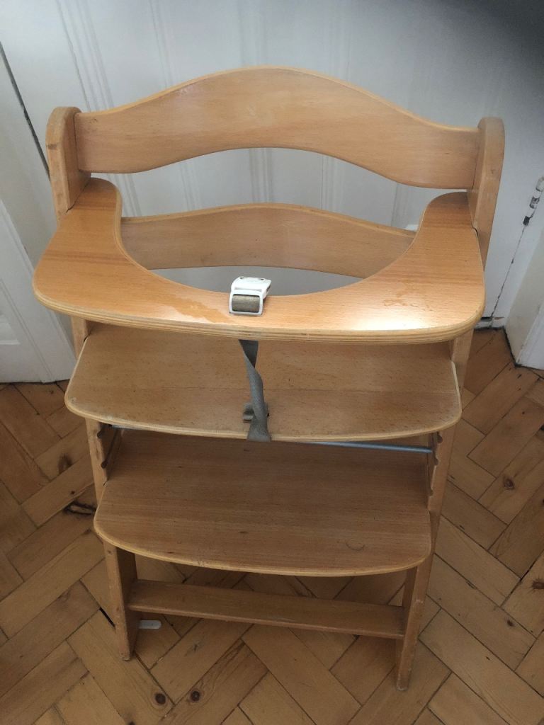 Solid Kindercraft Enock wooden high chair with adjustable seat height, designed to grow with your child. Strong, stable, and well made.
