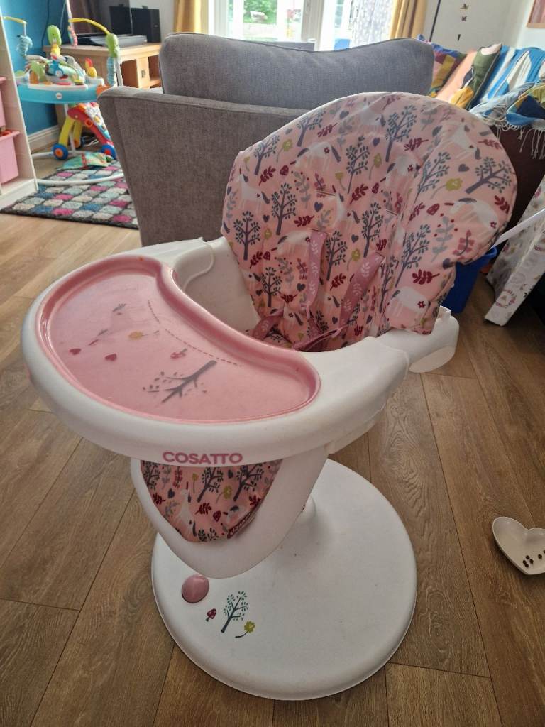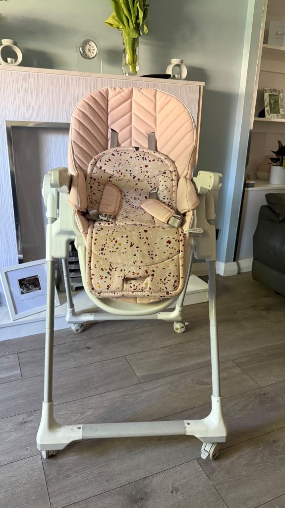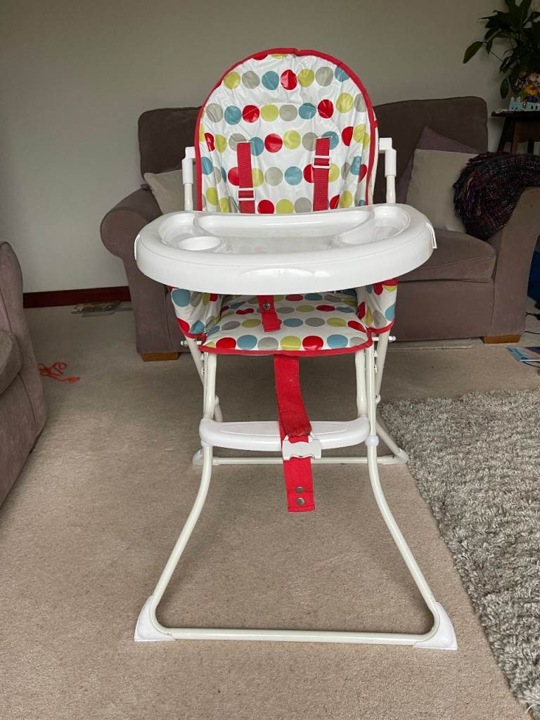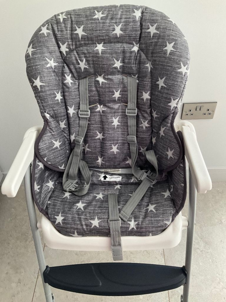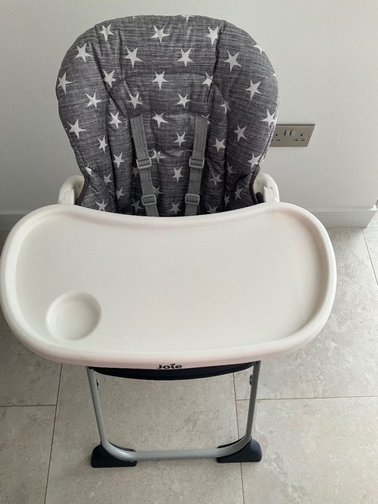 Joie high chair in excellent condition no marks . Folds up. This high chair only been used when are grandchildren come. All wipeable. Would be better to collect.