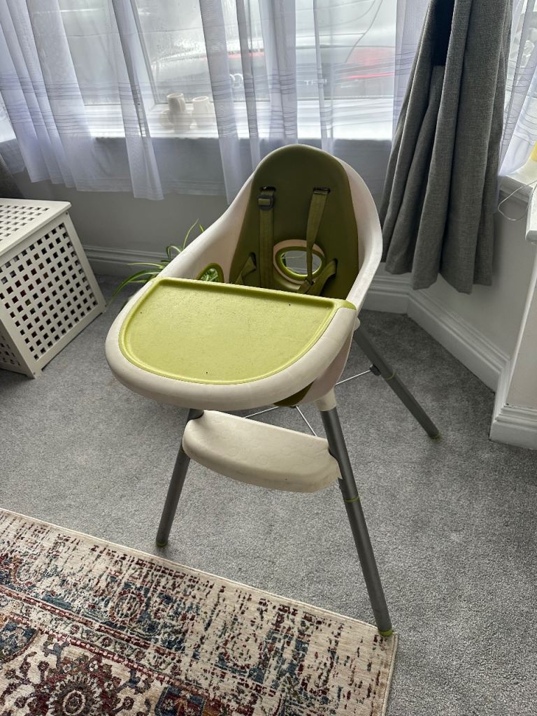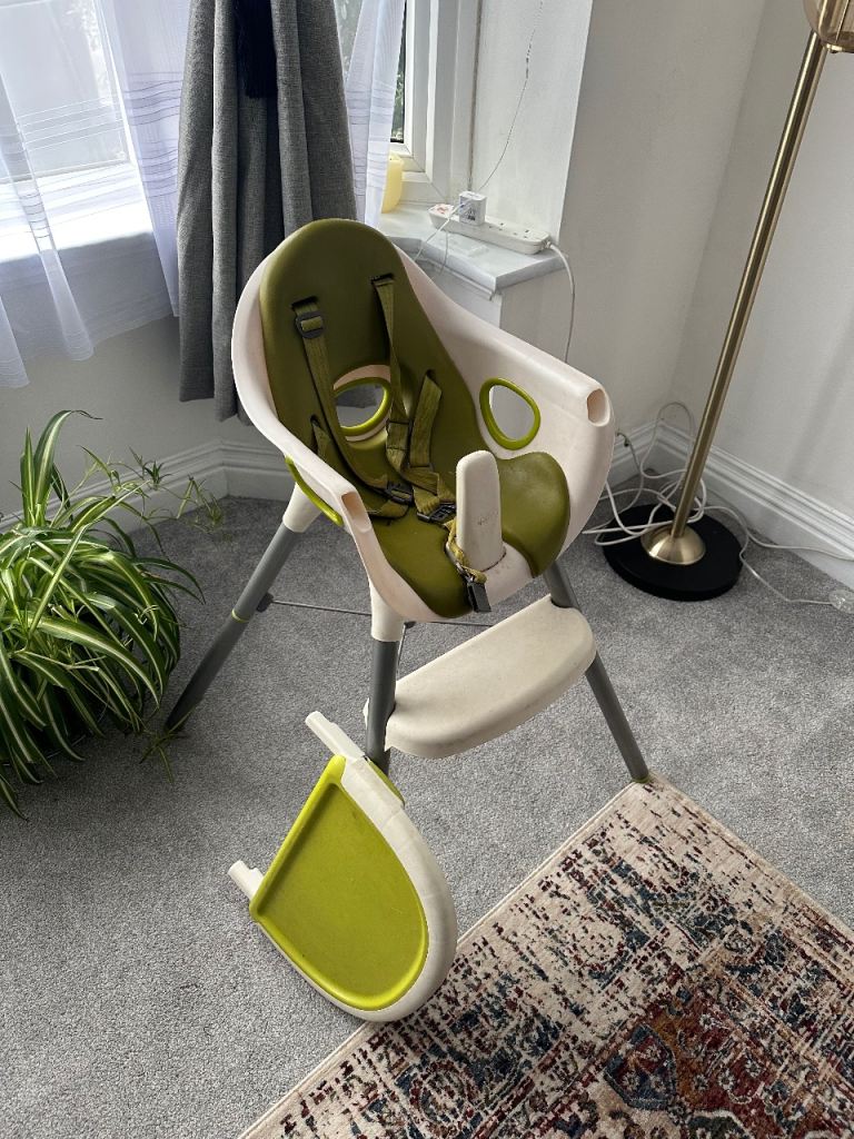 Mamas & Papas highchair in very good condition, clean and well looked after. Stylish neutral cream and lime green design that suits any kitchen or dining space.