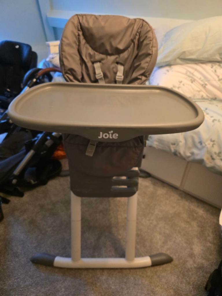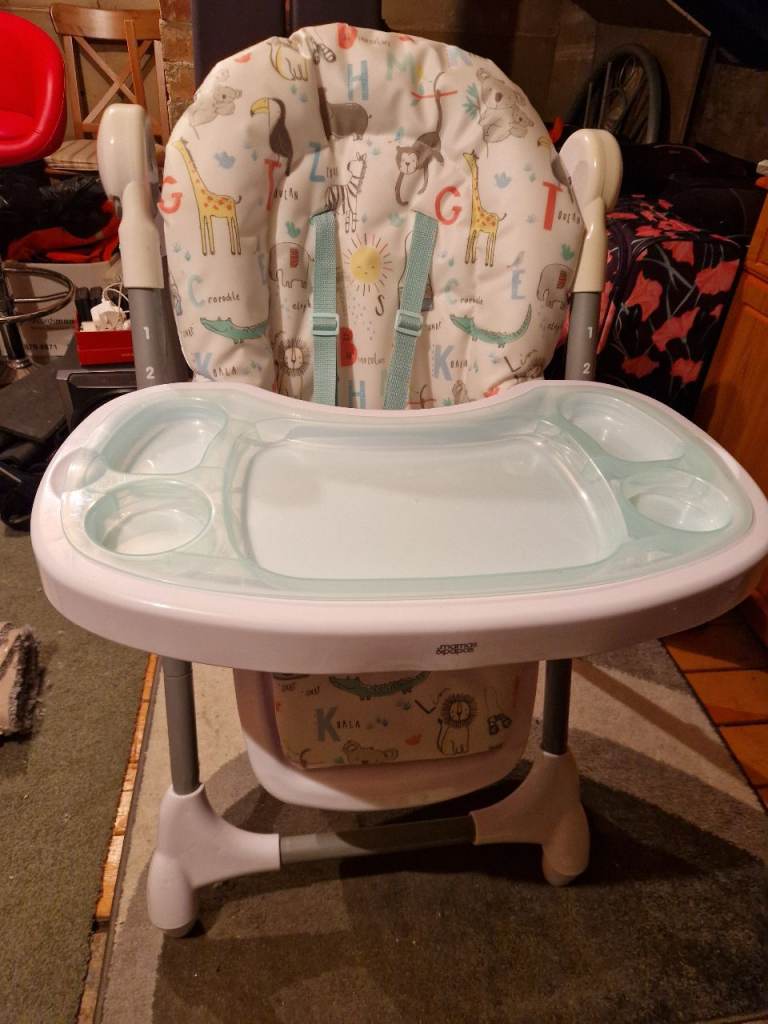 Suitable from 6 months or when baby can sit independently, this highchair comes with a removable and washable tray with cup holder and features a reclining seat for snoozy babies. F