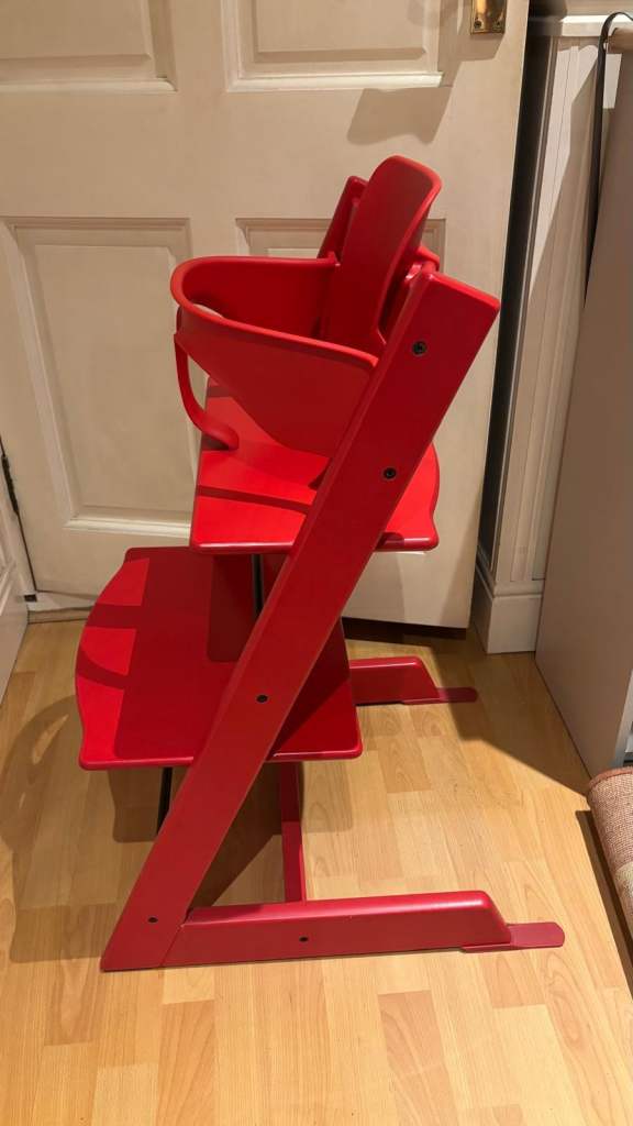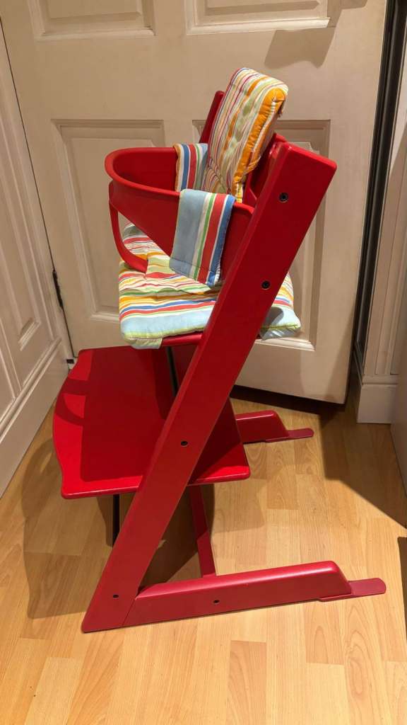 This highchair set supports children from birth and adapts as they grow. The chair allows your child to be seated directly at the dining table. The set is in excellent condition.