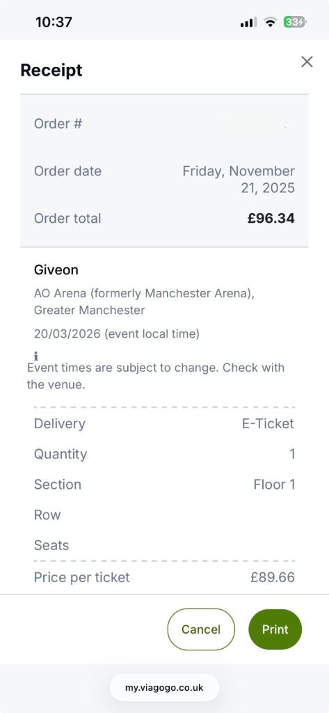 Tickets were £37.25 each