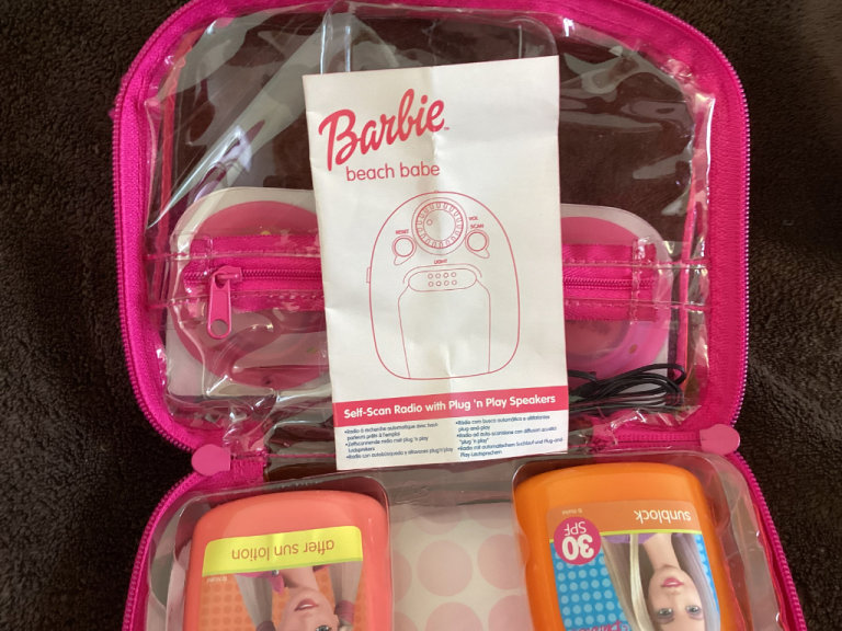 Mattel Barbie Beach Babe Bag Self Scan Radio,vintage 80’s ?,all contents complete as new including Sun Block and After Sun Lotion. Would be good for Barbie collectors . £5