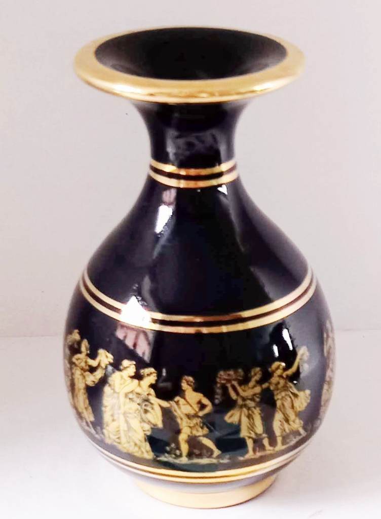BEAUTIFUL BLUE & GOLD (24K) VASE. GREEK KEY. HANDMADE IN GREECE IN 70s.