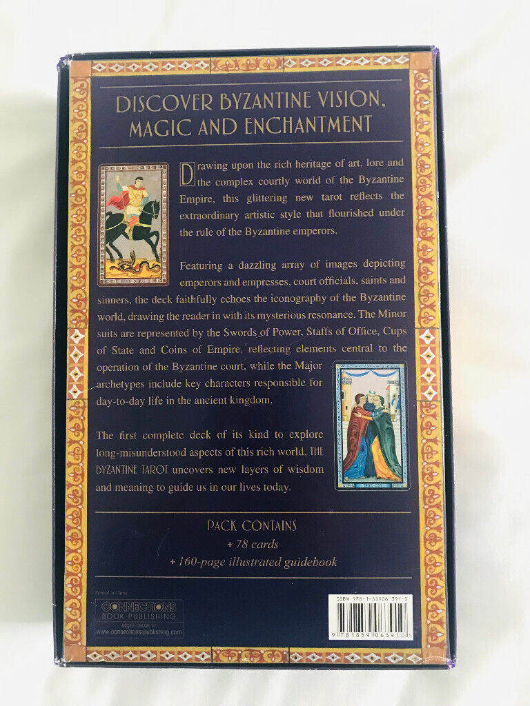 Drawing upon the rich heritage of art, lore, and the complex courtly world of the Byzantine Empire, this glittering new Tarot reflects the extraordinary, unique artistic style that flourished under the rule of the Byzantine emperors from the fourth to the fifteenth centuries. As the Roman Empire grew old and corrupt, and was finally broken by attacks from beyond its Eastern borders, the seat of power shifted from Rome to the great city of Byzantium, where a new kind of court--affluent, self-confident, and powerful--arose. The Byzantine world, which lasted from 330 to 1453 CE, combined the elegance and power of Rome with the opulence and splendour of the Orient. This combinations brought about a richness in the world of art, literature, and spirituality that has seldom been equalled. Today, few of us know much about Byzantium beyond its famous mosaics, glittering royal treasures, and the name itself. Yet it also has a mysterious resonance, and it is to the world of emperors and empresses, saints and sinners, courtly characters, and faith and miracles that the creators of this sumptuous new Tarot have turned, to discover Byzantine vision, magic, and enchantment. Brought to you by best-selling tarot authority John Matthews and renowned artist Cilla Conway, The Byzantine Tarot faithfully echoes the iconography of the era, reflecting the ornate gilded mosaics and manuscript-art styles of the period. Myth, legend, and the hierarchical complexity of life in Byzantium make this deck a unique exploration of a period of of time in which the last echoes of the pagan world were being enfolded into the burgeoning world of early Christianity. The Major Arcana cards are based on archetypal characters responsible for the daily activity of the Empire, while the Minor Arcana suits reflect elements central to the operation of the Byzantine court: the Swords of Power, the Cups of State, the Rods of Office, and the Coins of Empire. The presence of so many archetypal figures and roles within the imperial court suggests a link between the oldest forms of the Tarot and the wisdom that flourished at the time within this part of the classical world. Indeed, Tarot cards may never even have come into being, were it not for the eighth-century Byzantine empress Irene restoring the use of iconography, following a long period during which it was considered heretical. The first deck of its kind to explore long-forgotten and misunderstood aspects of this rich kingdom, The Byzantine Tarot uncovers new layers of wisdom and meaning to thrill Tarot users the world over, and guide us in our lives today.