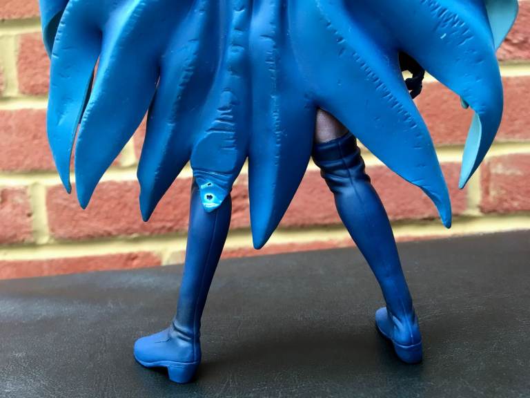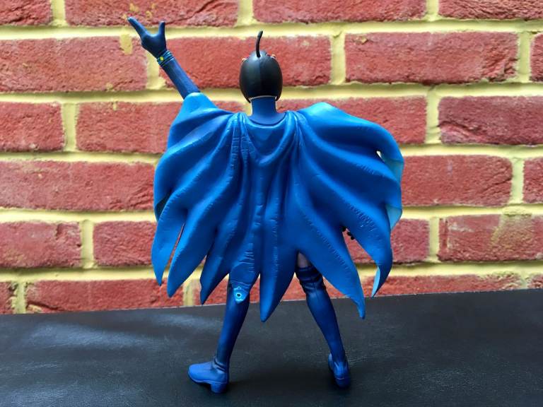 Being 20 years old it has a few battle scars.. Unfortunately the figure has been stored with too much weight pressing on the cape (which is made of a moulded rubber vinyl that is softer than the rest of the figure). The result being that it has left an imprint.. the issue being that the tip of one of the points of the cape has been flattened against the back of the calf of the left leg. There is no damage to the leg, but it has left the tip at that point of the cape flat with a tiny hole. On the positive, if you look at the photos you can see that because that particular point of the cape is made to be directly behind the left leg you cannot actually see it unless you look at the reverse of the figure, so it doesn't effect the look of the figure when on display. But I want to draw your attention to it to be sure you look at the photos and are aware.