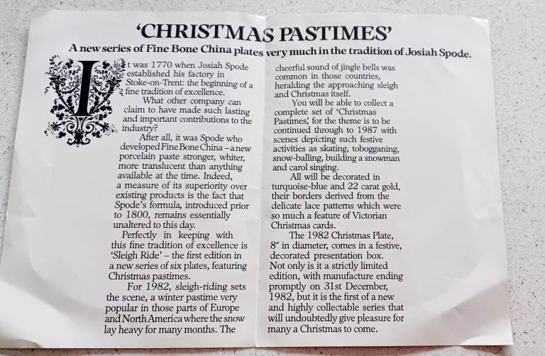 Set of 6 Christmas Pastimes 1982 - 1987 inclusive