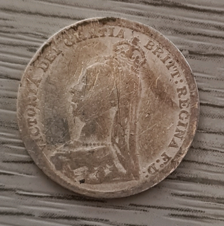 A Silver Threepence Coin from 1892 with the Jubille head of Victoria