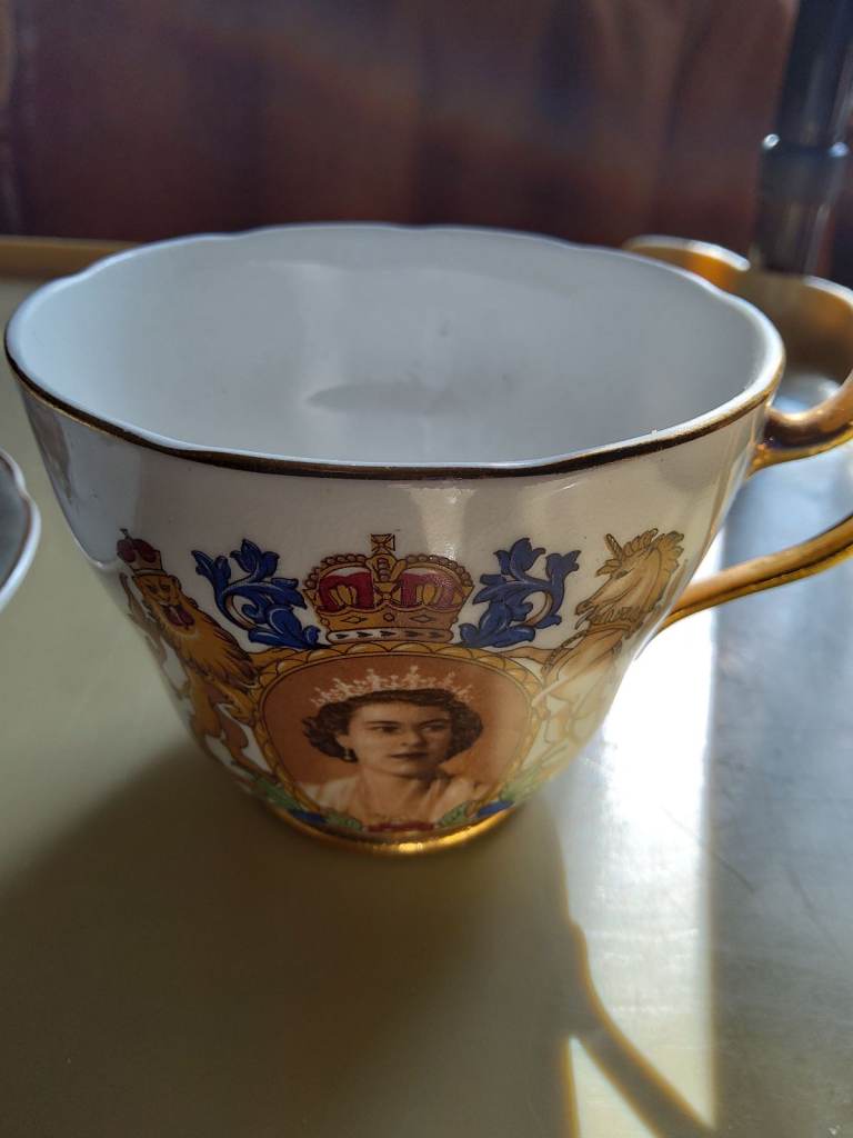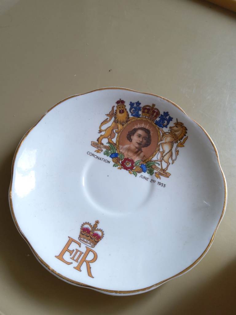 1953 coronation cup and saucer in excellent condition. Saucer diameter 14 cm. Cup height 7 cm .