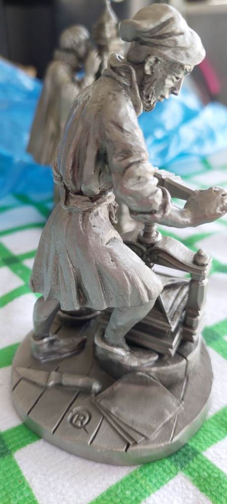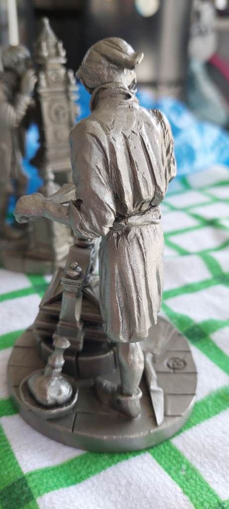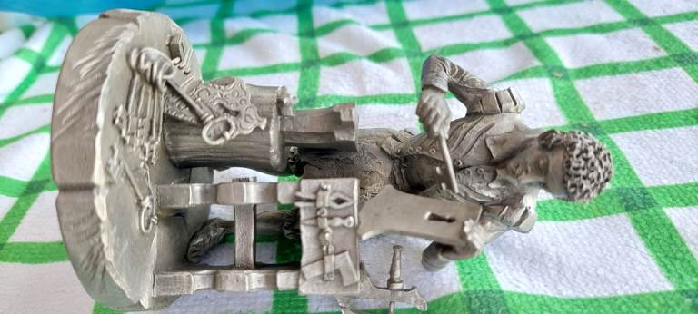 1979 Pewter Franklin Mint Printer and printing Press. Approx 4" inches high & 2 1/2inches diameter