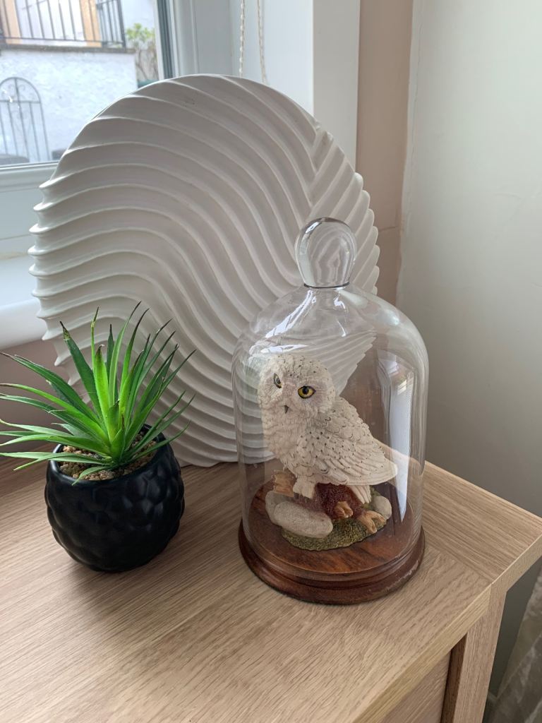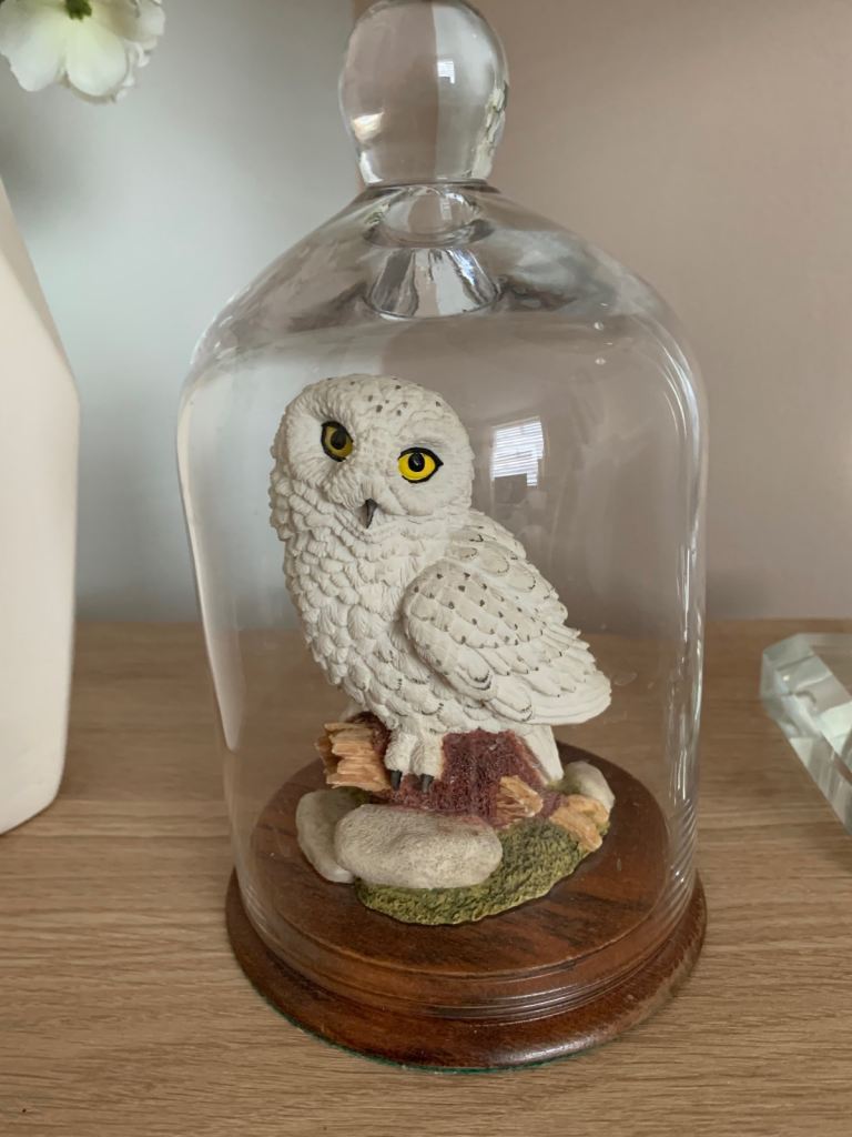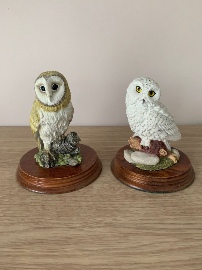 Two lovely owl figures from Leonardo collectables , perfect condition, will sell separately at £4 Place a glass globe over figures for a different effect, globe not included just to give buyer an idea , for a modern look.