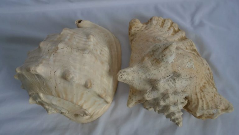 The shells are in their natural shape, unpolished, making them unique and rare collectable items for enthusiasts of shells, coral, and starfish. Their size and weight add an extra element of interest and a real focal point to any collection or display.