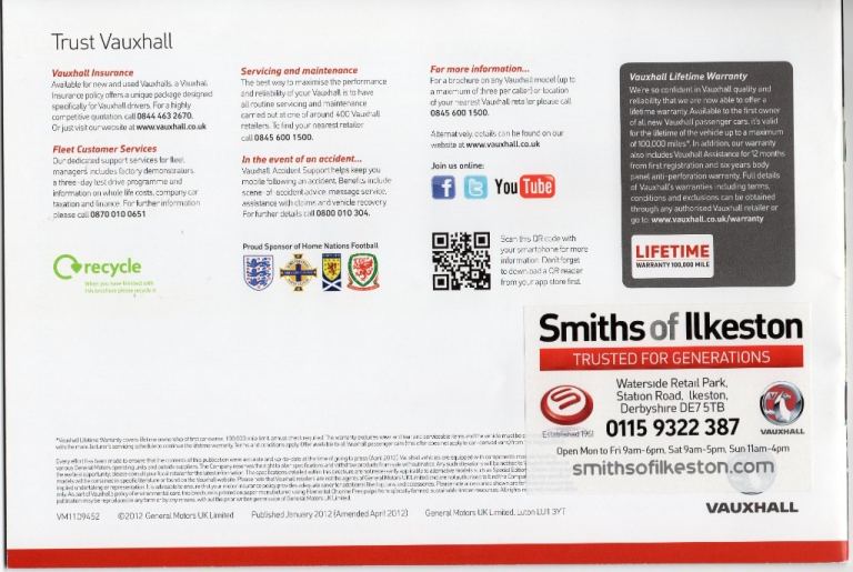 2012 Vauxhall Zafira brochure. Looks to be in really good condition throughout. Collectable condition. 26 internal pages.