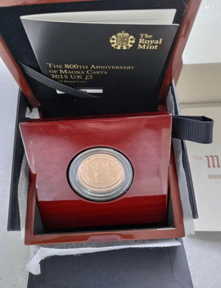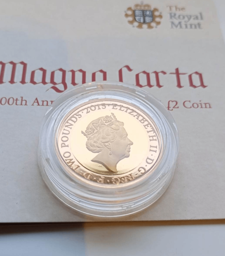 In 2015 The Royal Mint released a Two Pound Proof gold coin - also known as a Double Sovereign - to celebrate the 800th anniversary of the signing of the Magna Carta.