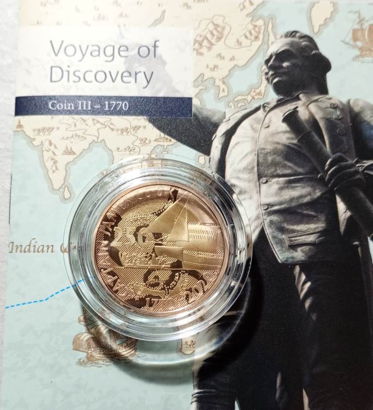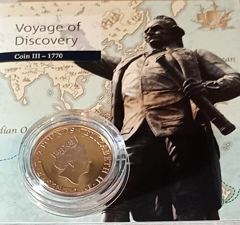 The coin commemorates Captain James Cook’s ground-breaking third and final voyage, celebrating a landmark moment in British naval history