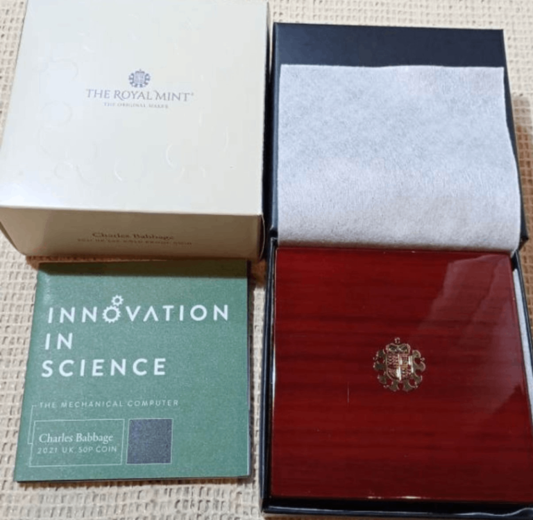 This 2021 Babbage Proof fifty pence coin weighs 15.5 grams, and is struck with 22 carat gold. The coin is beautifully presented in its original box, and comes with a certificate of authenticity and full colour booklet. Limited edition and great investment.