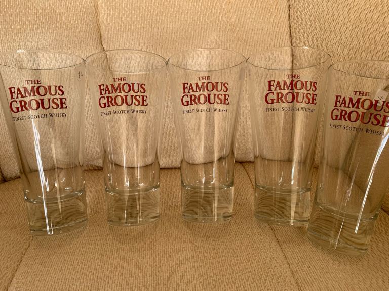 Collection of Five new , unused 16cm tall Famous Grouse Glasses . Only £4 each. Southsea