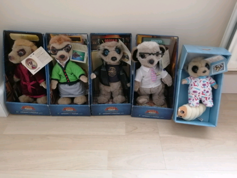 Yakov's Toy Shop - Compare The Meerkat Job Lot. 5. Condition is "New". Aleksandr, SERGEI, Vassily, Maiya, Baby Oleg.