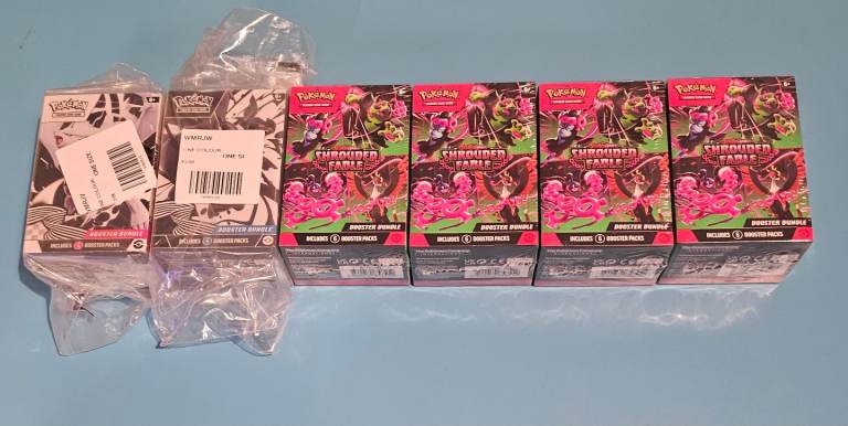 Includes six booster packs from the Pokémon TCG: Scarlet & Violet—Shrouded Fable expansion.