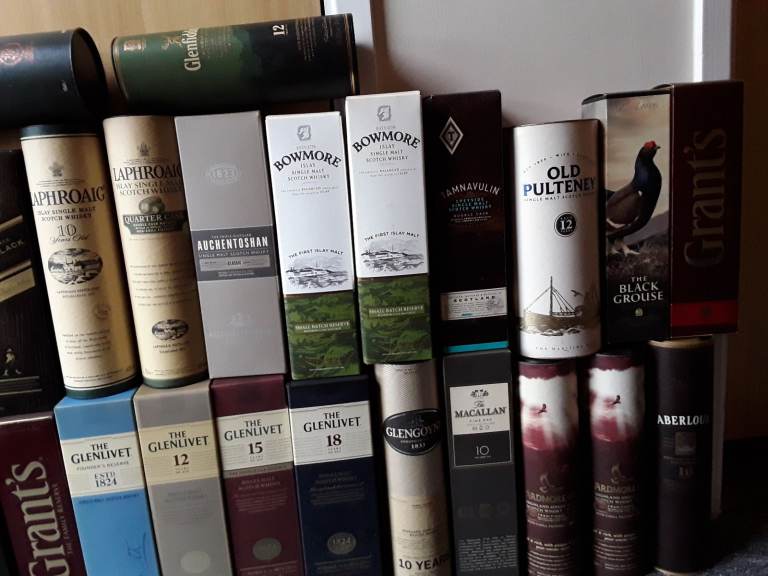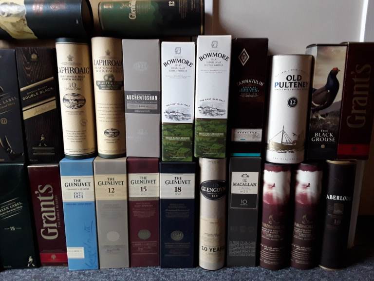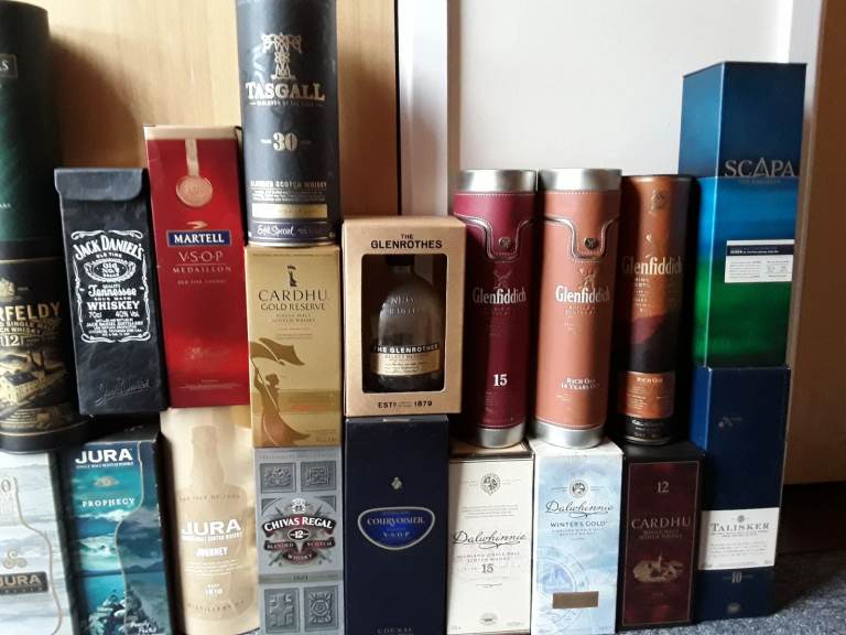 All empty mostly whiskey, wisky bottles and relavant boxes, containers, £75 job lot, distillery sets, bottle n boxes £3 ea bottle n box. Individual bottle n box £4 ea, bottles alone £2 ea. Will not split sets, or bottle from box ( if you do not want bottles you can recycle bin them here ) msg for availability, thanks. COLLECTION ONLY City ctr NR1 1LA
