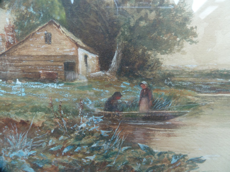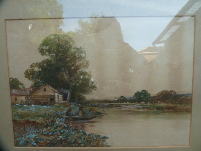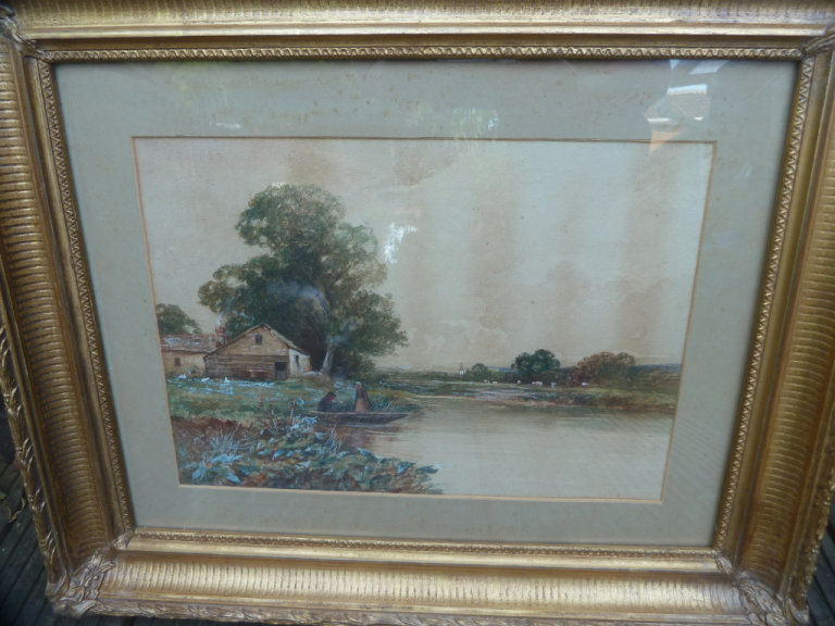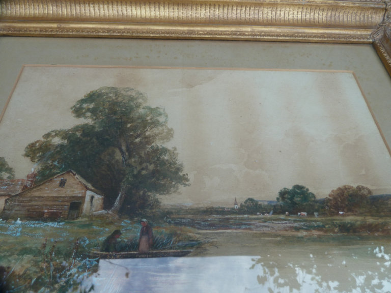 A Victorian water color painting of countryside scene in the gilt frame