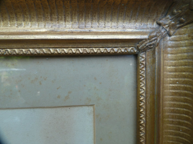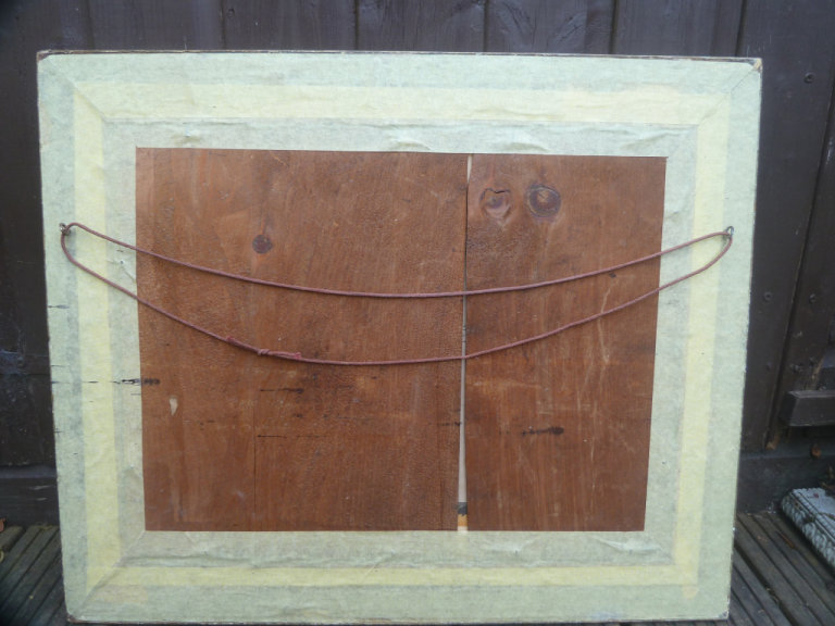The painting has some marks caused by the damp. Please see the photos for more detail. The original frame has been restored by the local craftsman. Size: 58 cm x 48 cm
