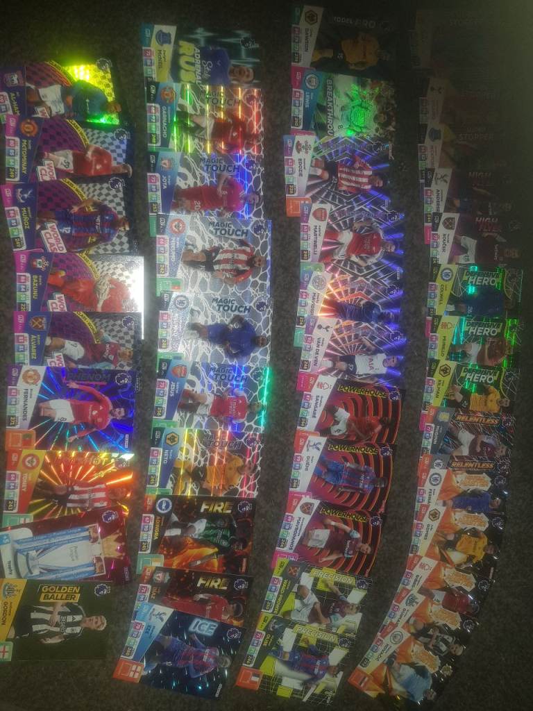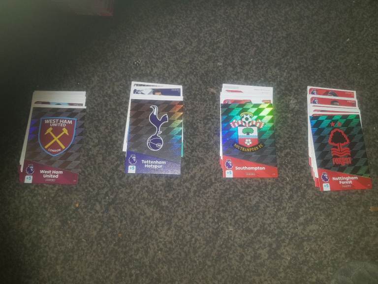 over 800 cards duplicates aswell but only 15 cards of full set panini adrenaline xl premiere league 25/26 also have about 120 of the QR scan phone app not used