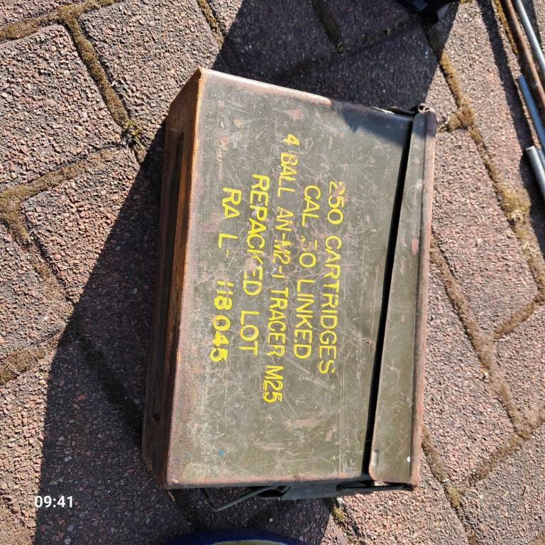 Vintage ammo box 250 cartridges cal 30 linked 4 ball an- m2'1 tracer m25. This is an empty box