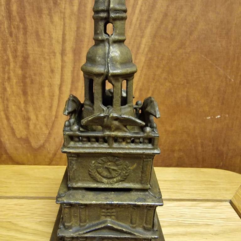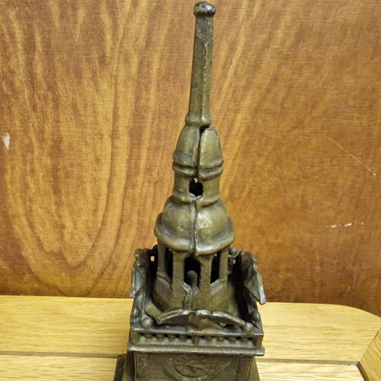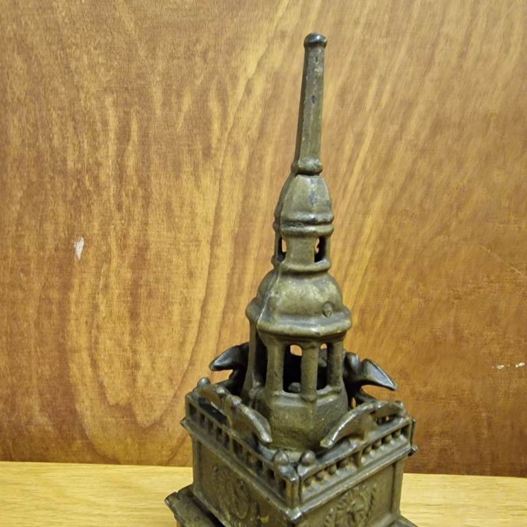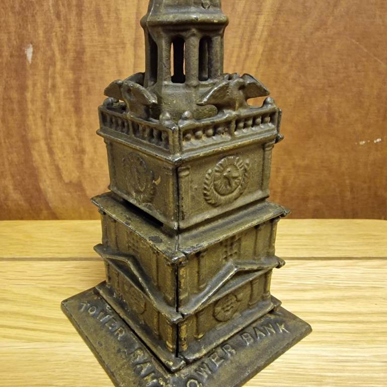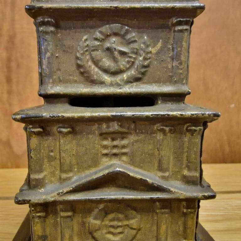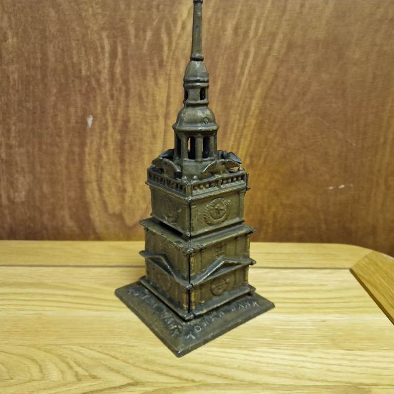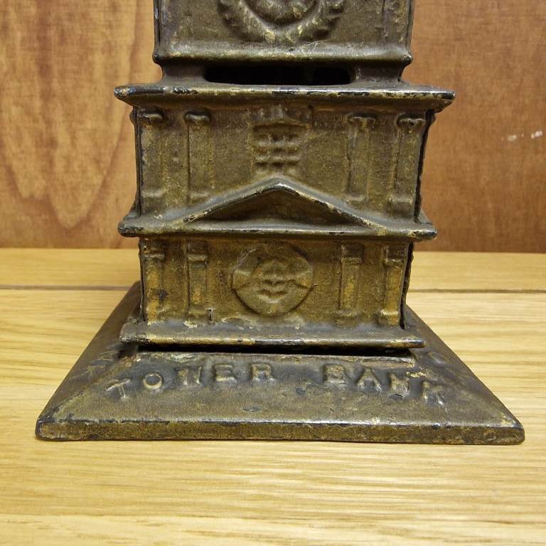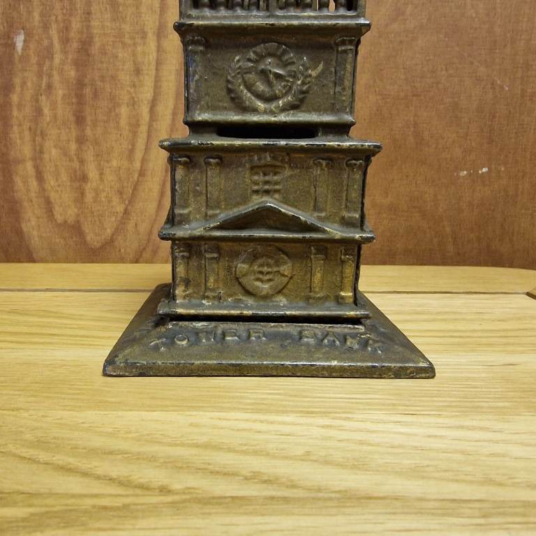 Antique c1902 TOWER BANK Building Shaped John Harper Cast Iron Money Box