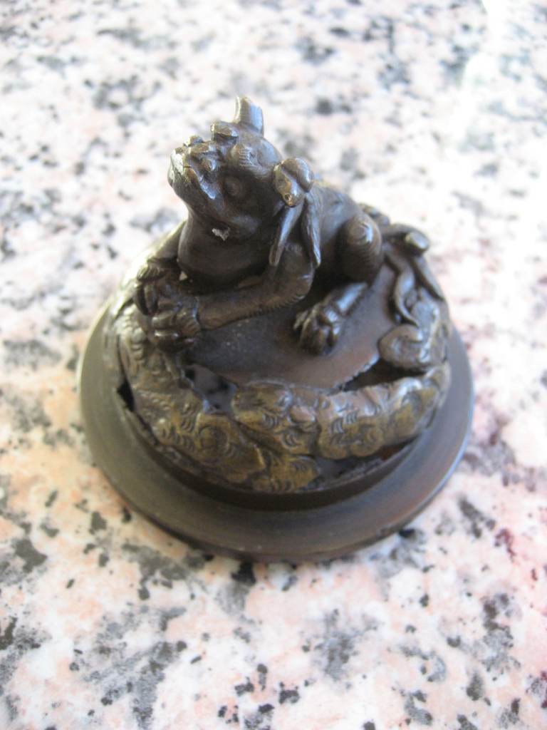I am selling my ANTIQUE Chinese Bronze Incense Burner, Decorated with Foo Dog Finial c1830 that is in great condition for its age and very heavy (approx 1.45 kgs).
