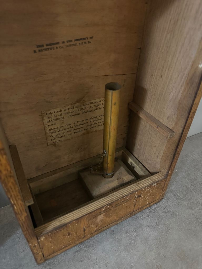 “Tuppenny” token machine, manufactured by B. Mathews & Co., London (S.E.16) and part of their well-known “Tulip Automatic” range.
