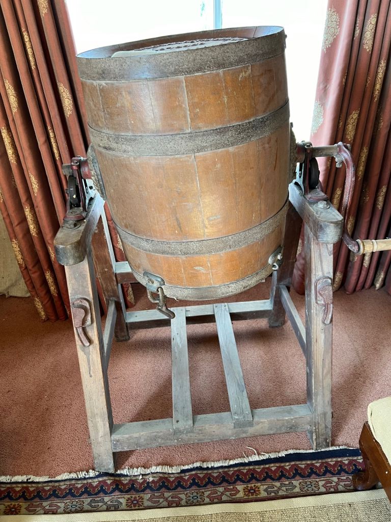 Antique Oak Barrel Butter Churn with the Hathaway maker plate