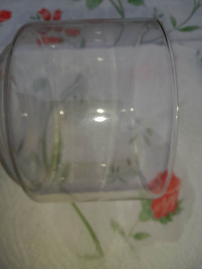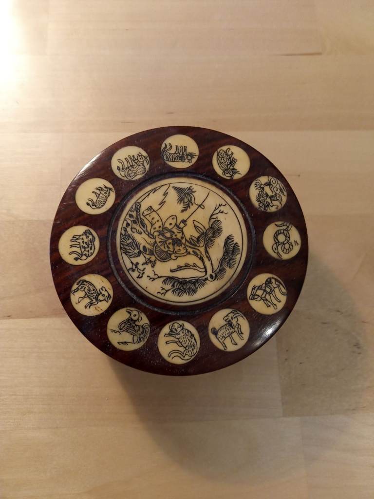Approximately 5cm tall without lid, top 10.5cm diameter.