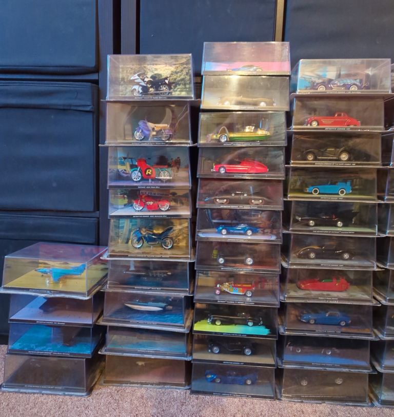 This is a sale for 62 x Batmobile models from the Eaglemoss magazine collection.