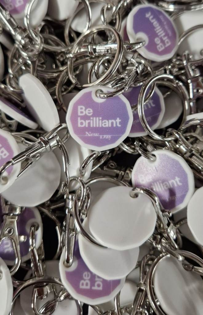 Be brilliant key rings joblot bundle 400 pieces brand new.
