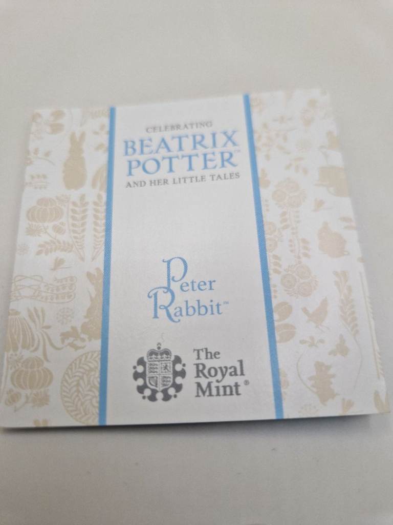 The royal mint peter rabbit 2018 uk silver proof coin.