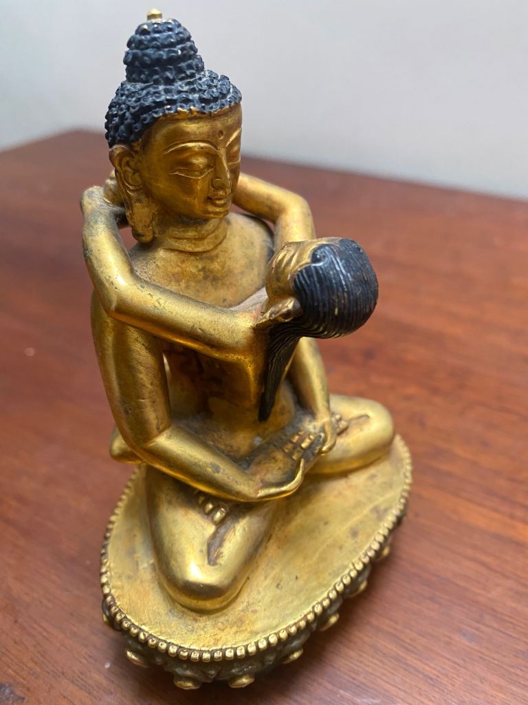 Beautiful Tibetan Buddha Yab Yum Samantabhadra 4in 10cm Statue Gold Gilt Nepal