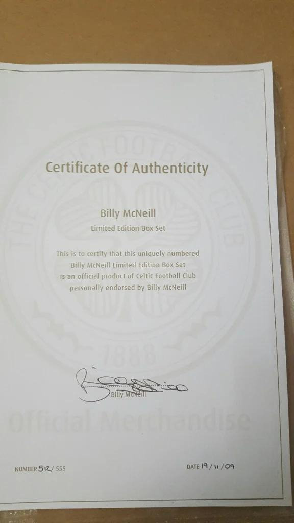 Billy McNeill Hand Signed, Framed Lisbon Lions Replica Shirt. Here's your chance to own a true piece of historical sporting memorabilia with this hand signed, framed replica Lisbon Lions shirt for the late great Billy McNeill, the Captain on that iconic day for Celtic in 1967 when they became the first British Team to win the European Cup. The item comes complete with an official authentication document, confirming its status as an official product of Celtic Football Club. This large framed shirt frame is 83cm in height and 73.5cm width.